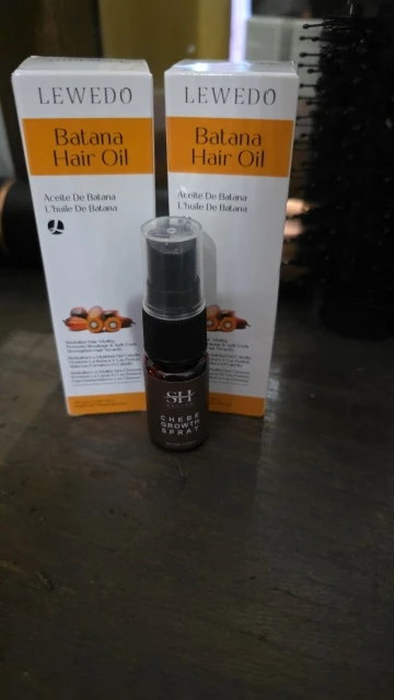 Two bottles of Lewedo Batana Hair Oil 50ml with a free Chebe Growth Spray gift, 100% natural and pure
