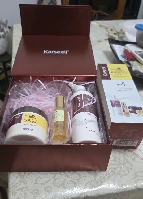 Product Name: karseell moisturizing repair set(contain 1pc Karseell collagen hair mask 500ml and 1pc Karseell Moroccan Argan Oil 50ml and 1pc Karseell moisturize hair shampoo)